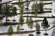 这个项目极具挑战性。场地邻近火车站,空间非常拥挤,三面被丑陋的建筑包围,其中包括嘈杂的夜店。设计构思是用带种植的3m高墙将糟糕的外部环境屏蔽在公园外,在内部营造绿色小山丘和高大乔木,创造一..