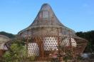 建筑的中间是夯土墙建造的主体,外部用竹子勾勒出样子。